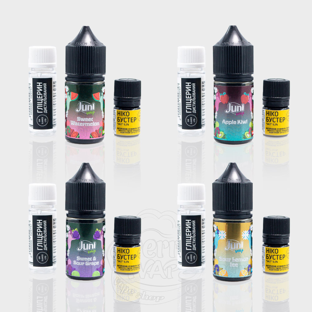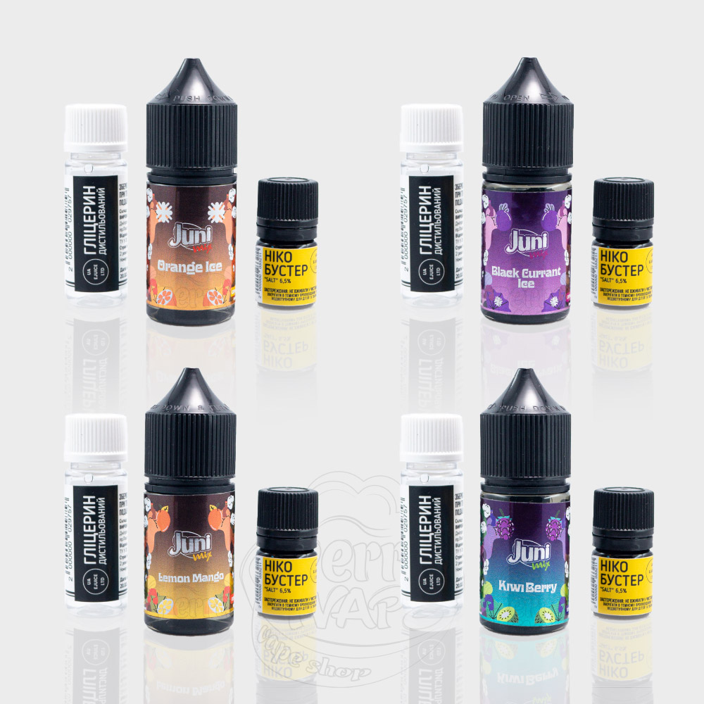 Juni Mix Salt 30ml - це набори сольової рідини від українського виробника UA E-Juice. Співвідношення гліцерину до пропілену складає 50/50, тож ви зі спокійною душею можете використовувати ці жижки з багаторазовими под-системами або ж іншими вейпами, які працюють на невеликій потужності. Серія Juni Mix відрізняється підвищеною міцністю, якщо казати точніше, то вона можлива у таких двох градаціях: