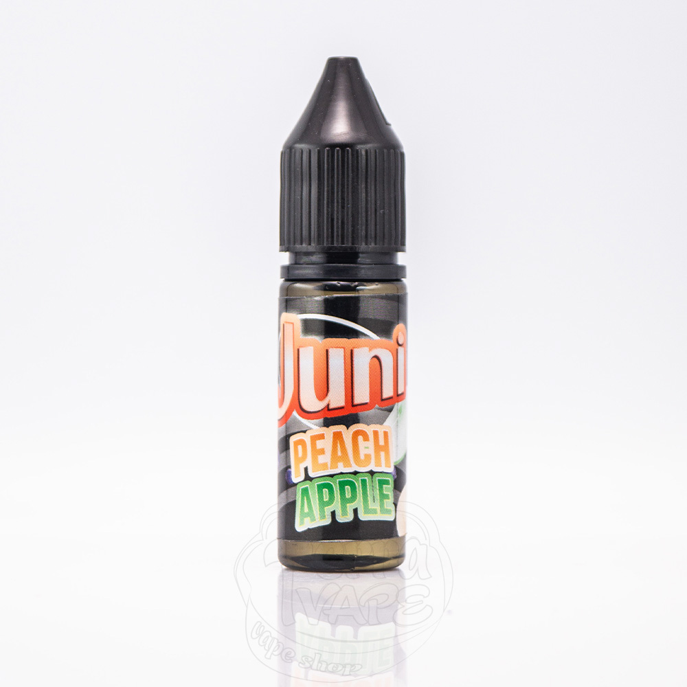 Juni Silver ICE Salt Peach Apple ICE 15ml 30mg - це жижа для под систем зі смаком запашного персику та кисленького зеленого яблука, що супроводжуються холодком на видиху.