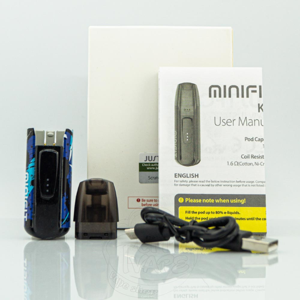 Justfog Minifit Pod System Kit – це одна з найкомпактніших под систем на ринку. Працює на вбудованій батареї 370мАч. Активується від кнопки. Має індикацію заряду. Підійде тим, хто шукає маленький, але продуктивний пристрій.