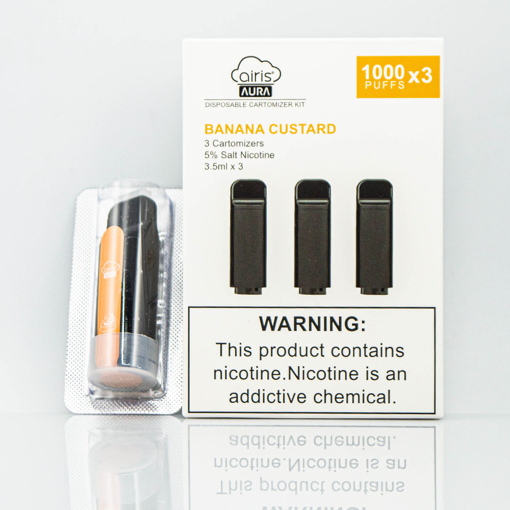 Картридж для Airis Aura - Banana Custard (Банановый крем) - это предзаправленный картридж для многоразовой pod системы Aura от компании Airis со вкусом нежнейшего взбитого крема с бананом.