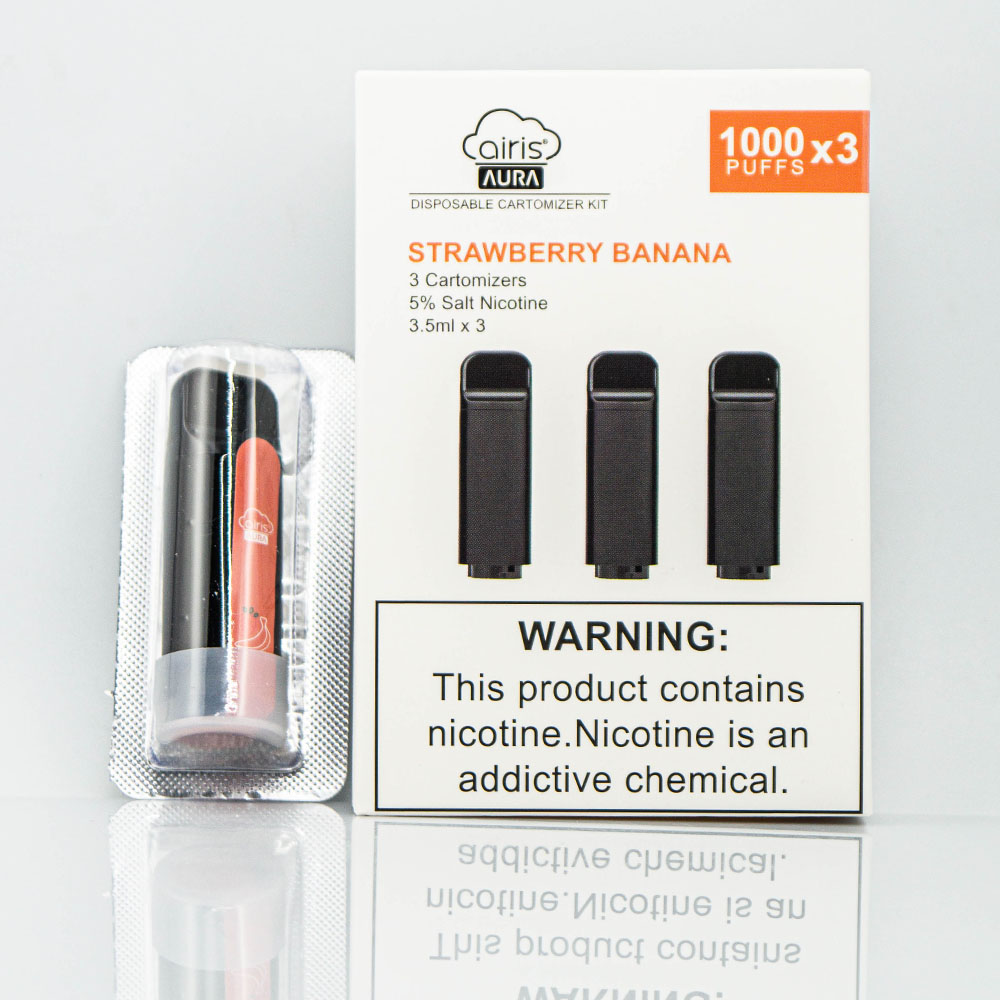 Картридж для Airis Aura - Strawberry Banana (Полуниця банан) - це передзаправлений картридж для багаторазової под-системи Aura від компанії Airis з класичним міксом стиглого банана і полуниці.
