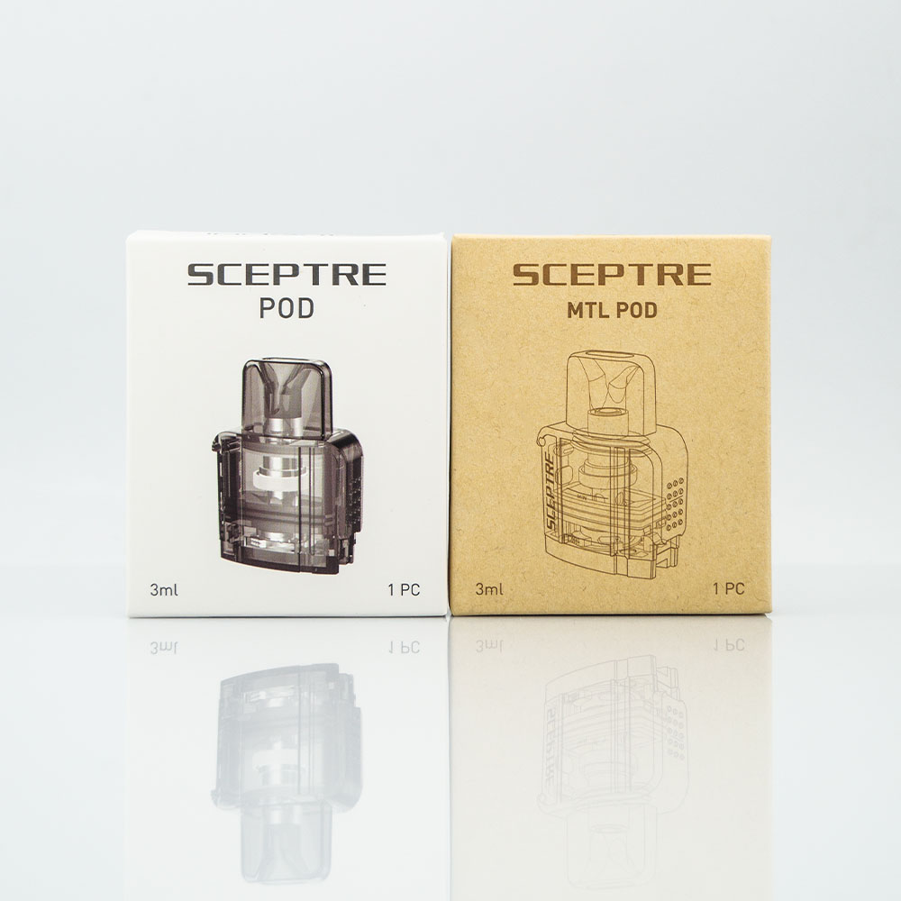 - Sceptre MTL POD комплектуються двома випарами із опором 0.65Ом (один встановлений, інший - у комплекті), призначені для сигаретної затяжки.