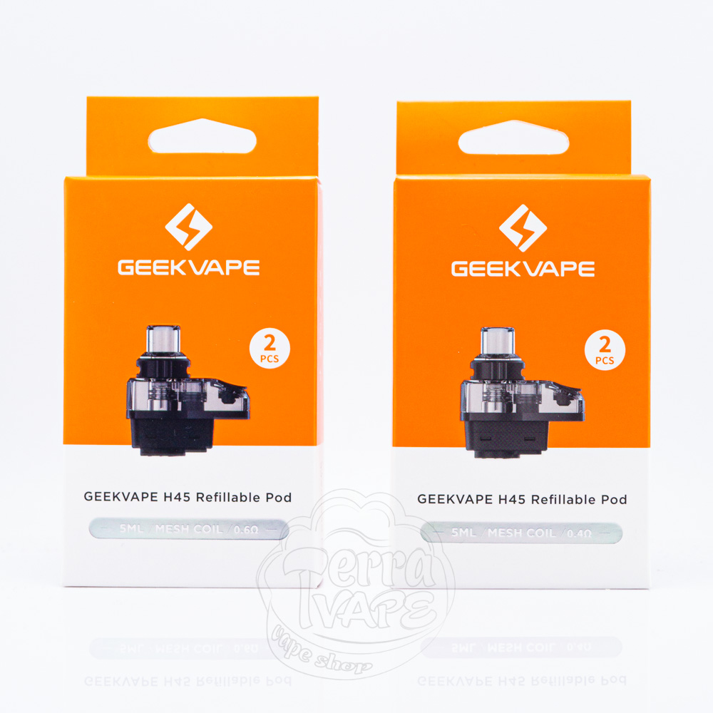 Geekvape H45 Refillable Pod Cartridge 5ml - це картридж із вбудованим випарником, призначений для використання із пристроями GeekVape H45 (Aegis Hero 2) та GeekVape H45 Classic (Aegis Hero 3).