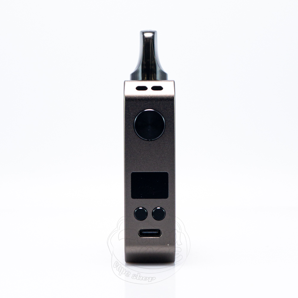 Спереду у вас є кнопка запуску, яка приємно клацає, і екран з кнопками регулювання під нею. OLED дисплей зовсім невеликий, він має розмір 0.42``. Внизу є слот для зарядки Туре-С, щоб вейп можна було заряджати стоячи. На зворотному боці розташований слейдер, який призначений для налаштування тугості затяжки. Також у вас є можливість використовувати ремінець, щоб носити електронну сигарету на шиї або просто завжди тримати її під рукою, не переймаючись за те, що вона може десь загубитися.