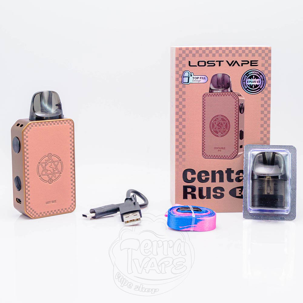 Для пода підходять картриджі E Plus, включаючи також E Plus RBA, за допомогою якої ви отримаєте можливість обслуговування. Сам девайс може підтримувати опір від 0.3 до 1.0Ω. Місткість резервуарів складає 3мл, що цілком відповідає показникам потужності та ємності батареї. Для заправки передбачений отвір на бічній стороні корпусу. Заряджається Центаурус Е40 кабелем типу Туре-С зі швидкістю 5V/1.4A.