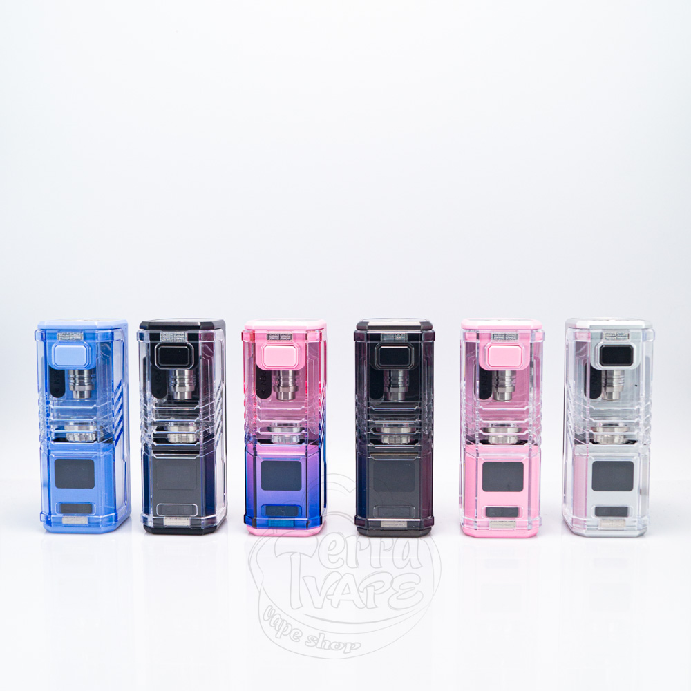 В основі девайс має форму, яка більш за все нагадує овал. Прозора передня панель містить велику кількість прорізів, які дозволяють отримувати більш плавну та м'яку затяжку за рахунок великої кількості повітря. Так само, як і дверцята батарейного відсіку, вона знімається, щоб ви могли отримати доступ до атомайзера. На самому корпусі між двома панелями розташований напис із назвою моделі.