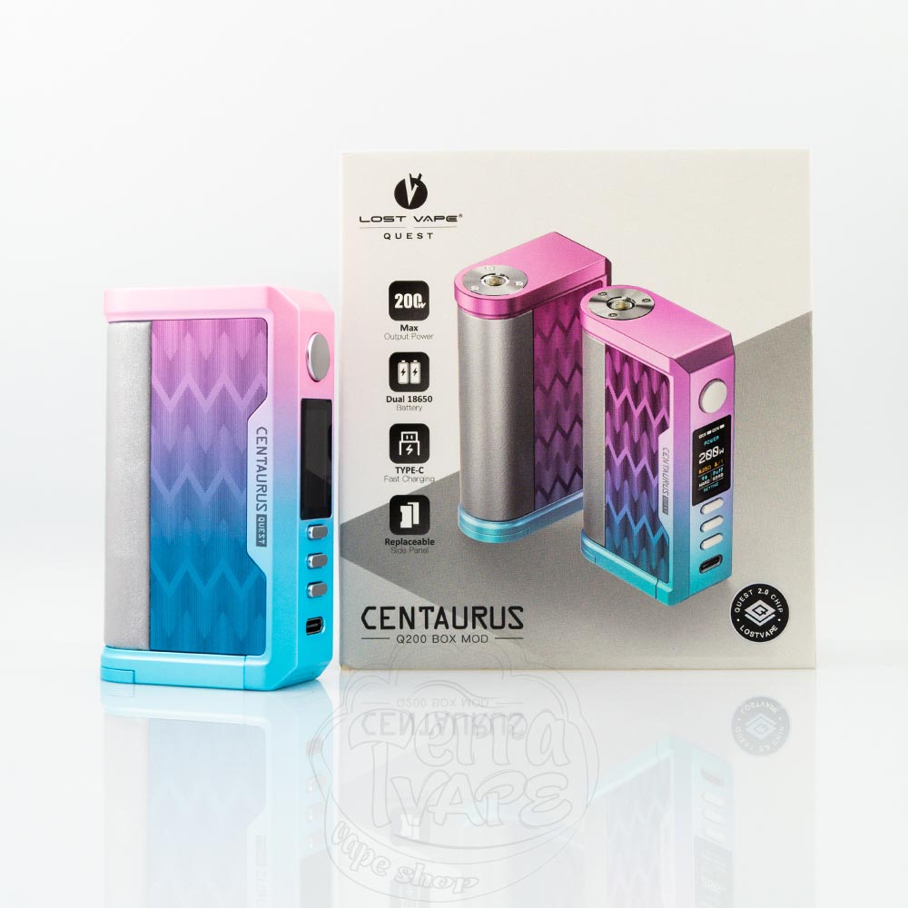 Lost Vape Centaurus Q200 Mod 200w – це нова версія бокс-моду Centaurus, тепер на фірмовому чіпсеті Quest від Lost Vape. Працює на двох акумуляторах 18650. Максимальна вихідна потужність становить 200Вт. Посадковий майданчик 26мм. Продуктивний та простий в експлуатації мод.