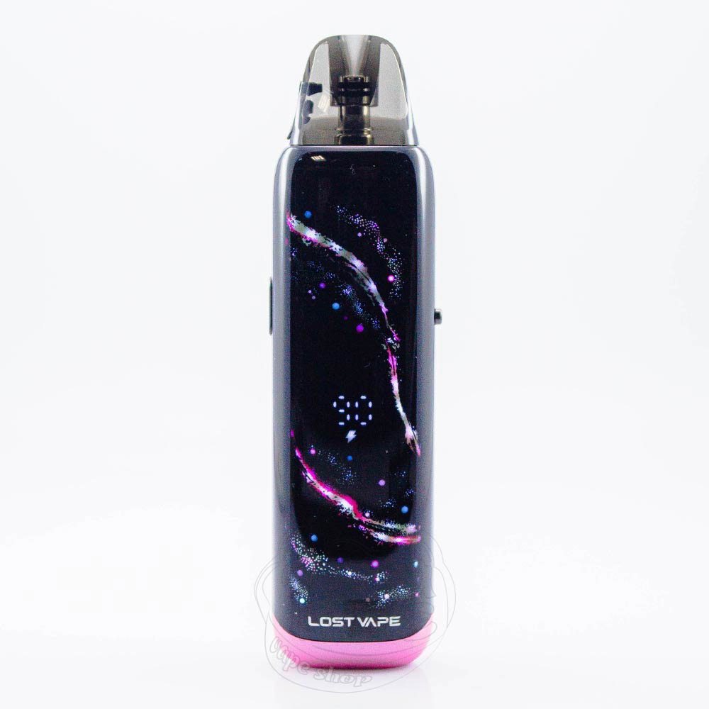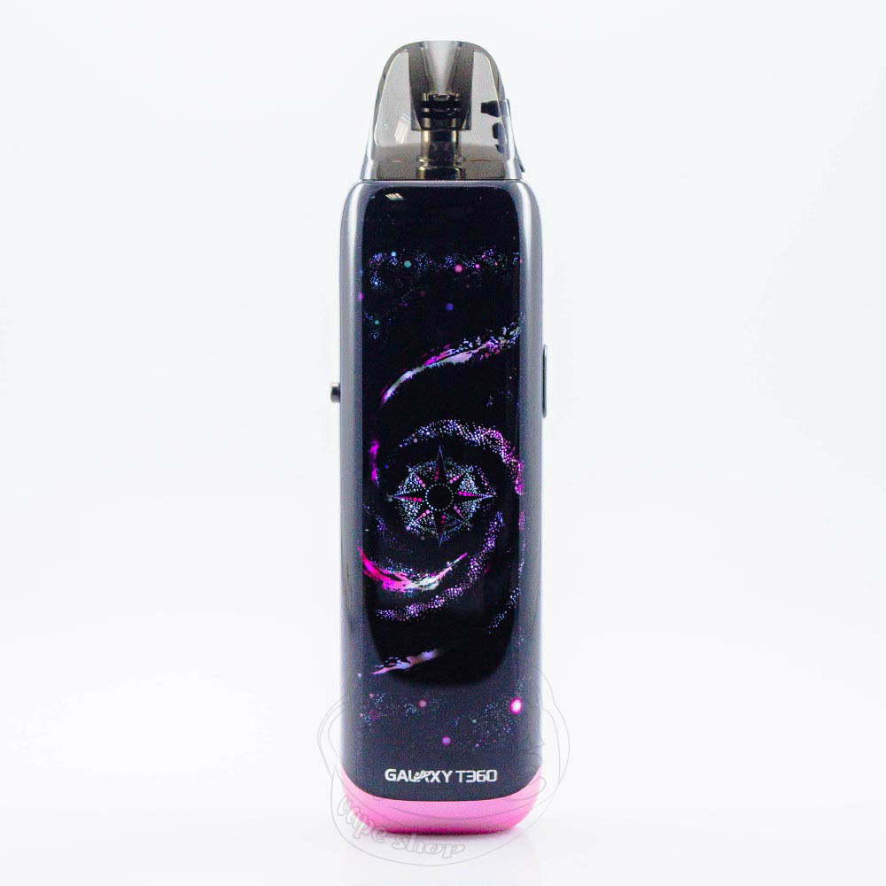 Lost Vape Galaxy T360 Pod System Kit 1200mAh Sakura Galaxy - це багаторазова POD-система чорного кольору з рожевими сівтлодіодами і нижньою частиною, від досить відомої на вейп-ринку компанії Lost Vape. Містить в собі вбудований акумулятор ємністю 1200mAh та заряджається від порту Type-C, а також підтримує швидку зарядку 5V/2A. Максимальна вихідна потужність складає 35W. Девайс сам підлаштовує сумісний ватаж під опір картриджу, який використовується. На корпусі є слайдер - регулятор тугості затяжки. Пристрій сумісний з усіма картриджами лінійки Урса, а попередньо вбудований - Ursa V3 з нагрівальним елементом опором 0.8Ом та об'ємом 2.5мл, з верхньою заправкою. Активація автоматична - через затяжку.