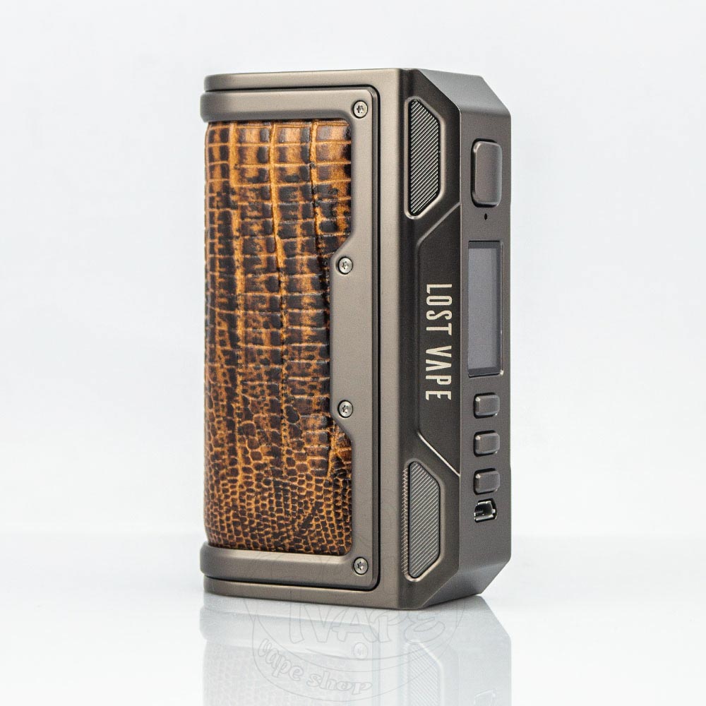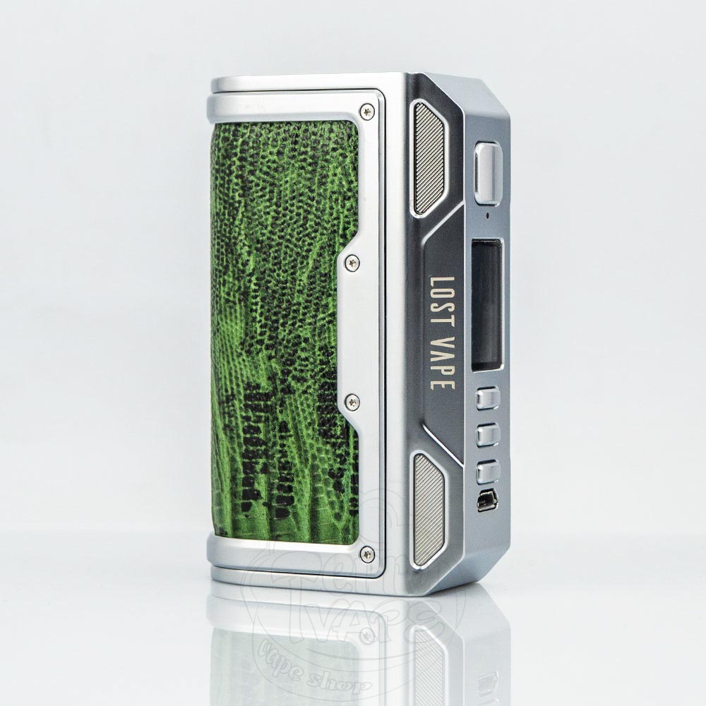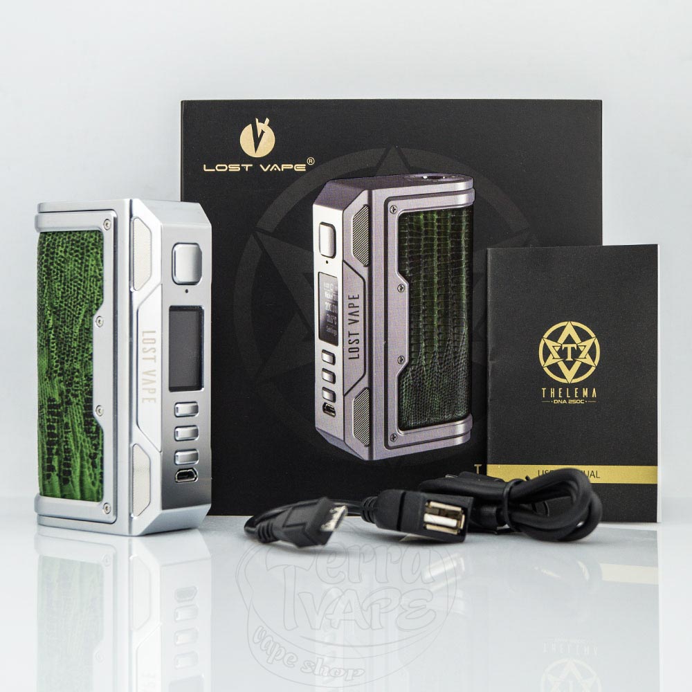 Lost Vape Thelema DNA250C Box Mod - це бокс-мод від популярної компанії Lost Vape. Працює від двох акумуляторів формату 18650 (купуються окремо). Усередині встановлений чип Evolv - DNA250C. Максимальна вихідна потужність становить 200W. Посадковий майданчик може вмістити атомайзери діаметром до 27 мм.