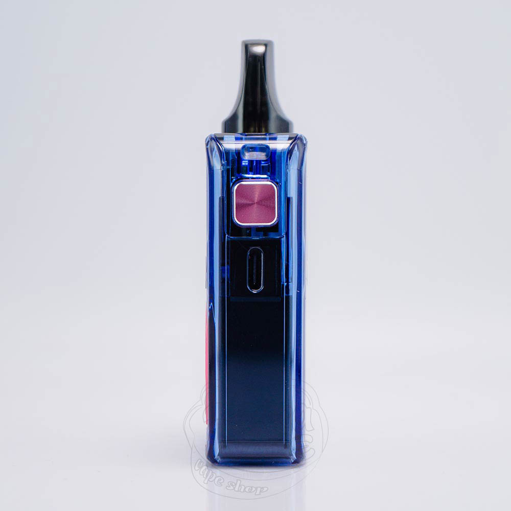 Кнопка Fire знаходиться на бічній стороні пристрою та має квадратну форму із приємною на дотик текстурою. Її можна використовувати для активації затяжки, а також для керування електронною сигаретою (виставляти потужність, включати або виключати блокування). На тій самій бічній панелі під кнопкою розташовано роз'єм для кабелю USB Type-C.