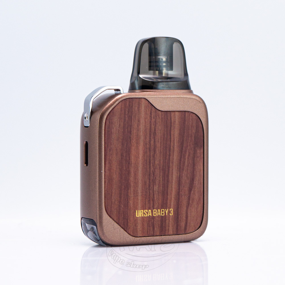 Lost Vape Ursa Baby 3 Pod Kit 1200mAh Oak Wood - це третя версія багаторазової pod-системи Урса Бейбі від всесвітньо відомої компанії під назвою Lost Vape. Потужність електронної сигарети може досягати 30W, а автономна робота забезпечується завдяки вбудованій батареї на 1200мАг, що є значно більш продуктивним параметром, аніж у попередніх моделях серії. Пристрій можна активувати двома способами: від затяжки або за допомогою кнопки. З'явився кольоровий TFT екран діагоналлю 1.30``. Можна відрегулювати тугість затягування, використовуючи звичний повзунок.
