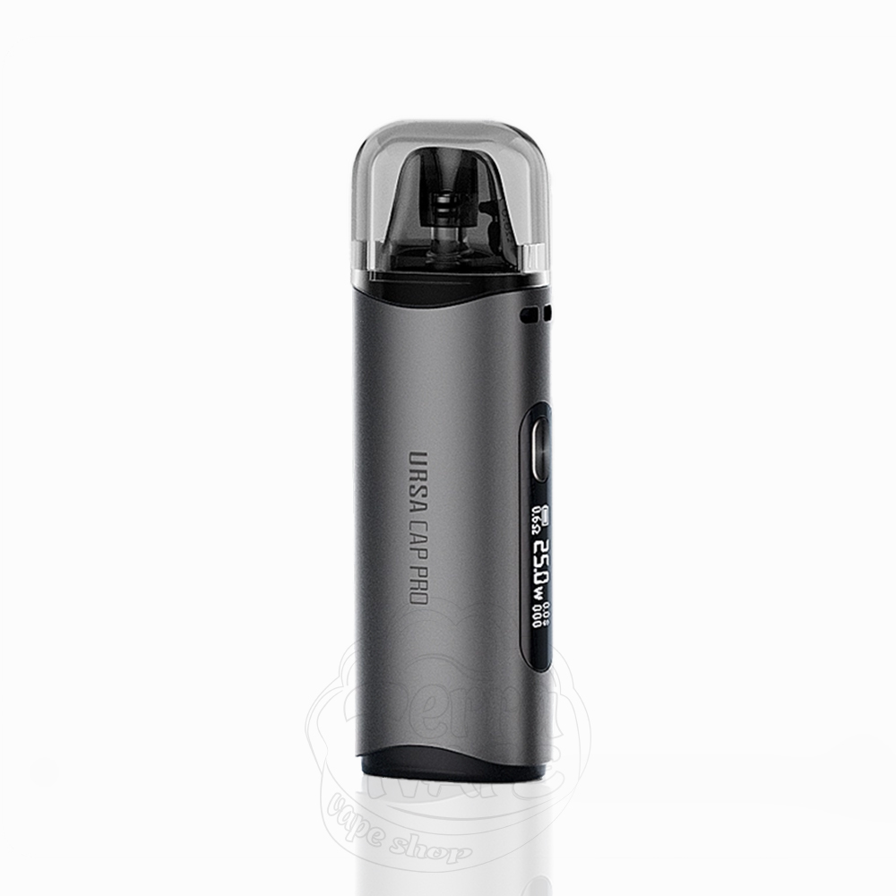 Lost Vape Ursa Cap Pro Pod System Kit 1200mAh Space Gunmetal - це покращена версія багаторазової POD-системи Ursa Cap, сірого кольору від компанії Lost Vape. Має збільшену вбудовану батарею на 1200mAh, яка підтримує зарядку 5V/2A від порту Type-C. Корпус з алюмінієвого сплаву та PC пластику на собі має невеликий 0.69" OLED дисплей та регулятор тугості затяжки. В комплекті йде з захисним від пилу магнітним ковпачком. Максимальна потужність сягає 35W, що дозволяє обрати між сигаретним (MTL) та більш вільним стилем паріння (RDL). Активація автоматично відбувається через затяжку. Комплектом йде картридж з вбудованим нагрівальним елементом оновленої версії Ursa V3 з верхньою заправкою та об'ємом резервуара 2.5мл. Опір 0.8Ом, з яким варто обирати потужність до 17W. Підтримує всі картриджі серії Урса.