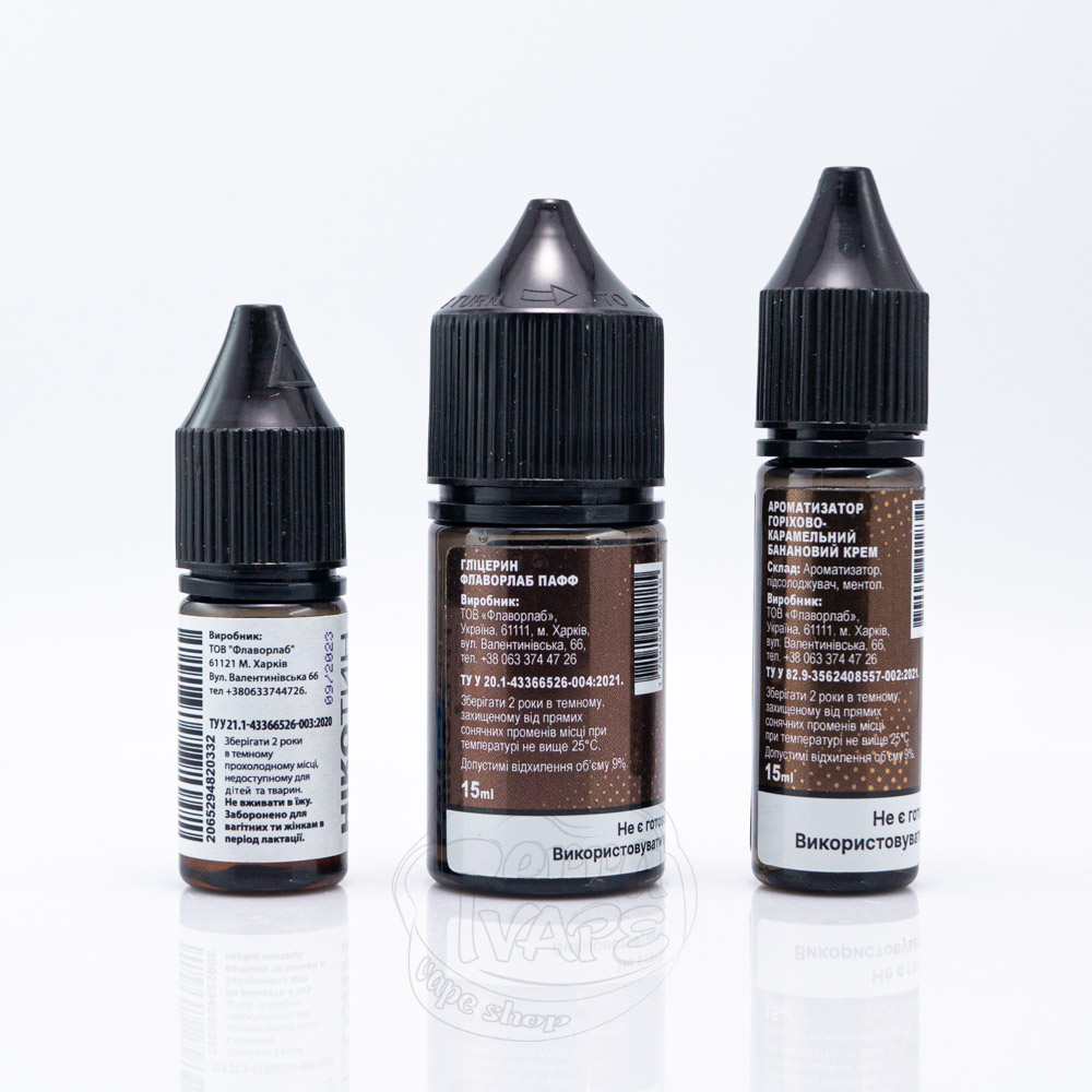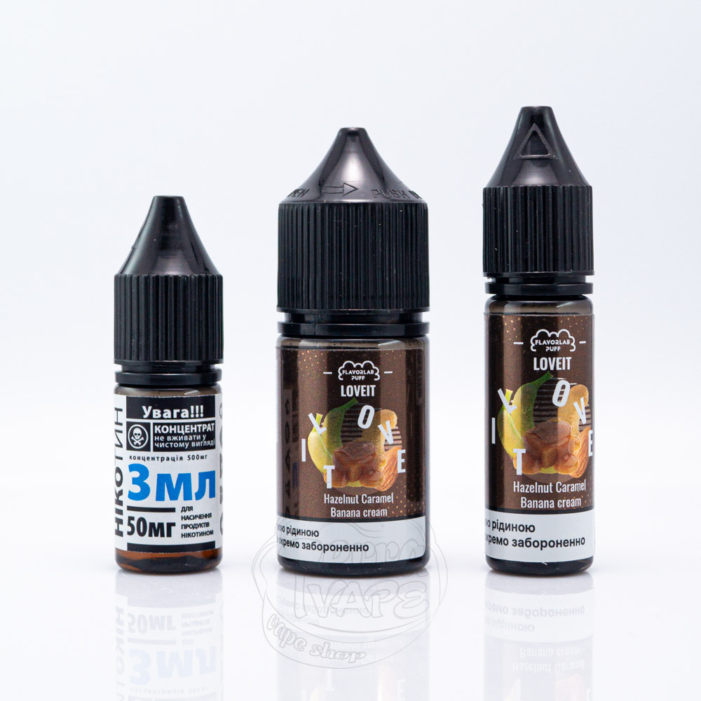 Love It Salt Hazelnut Caramel Banana Cream 30ml 50mg - це набір для самостійного приготування сольової рідини зі смаком бананового крему з тягучою карамеллю і горіховою крихтою.