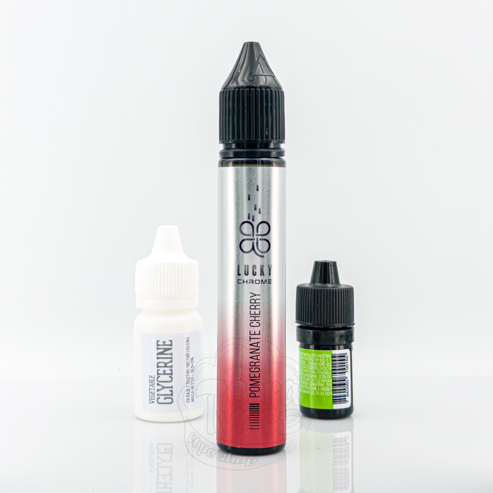 Lucky Chrome Salt Pomegranate Cherry 30ml 50mg - це набір для самостійного приготування жижки зі смаком кисленького гранату та соковитої солодкої вишні з прохолодою на вдосі.