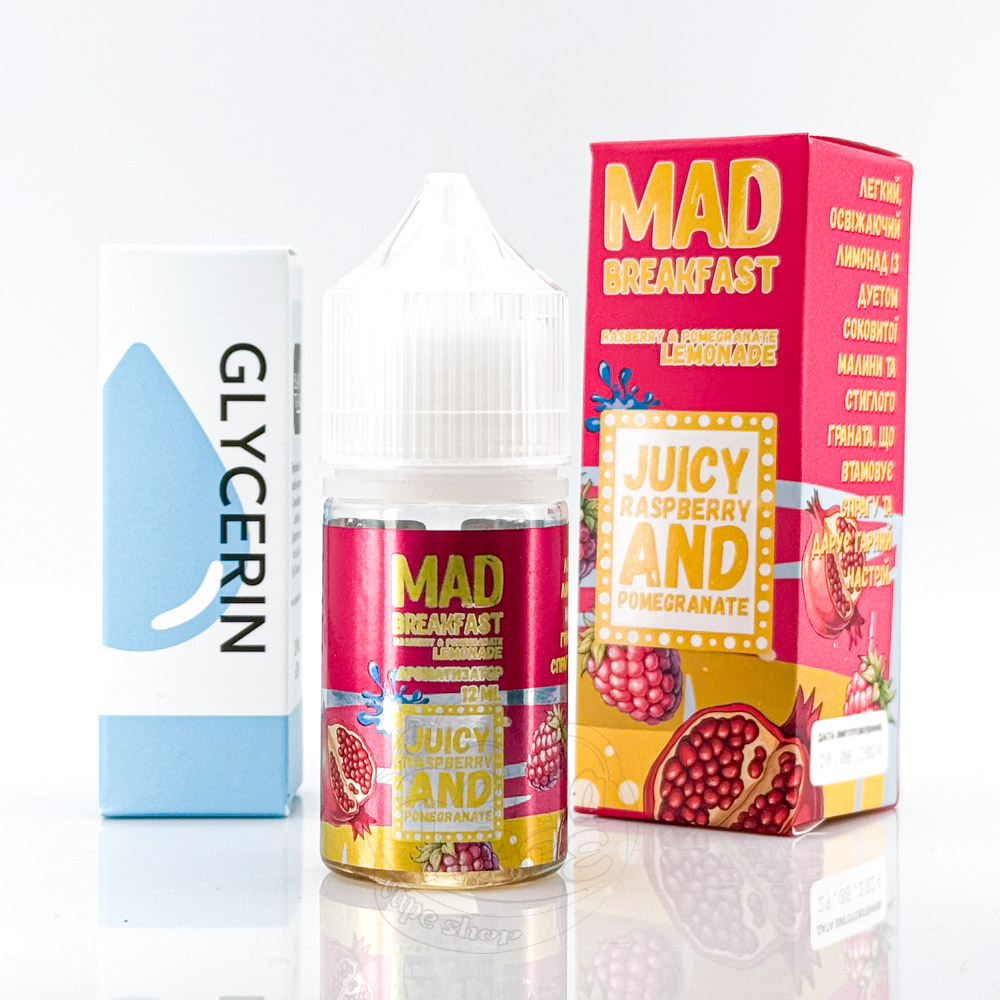 Mad Breakfast Salt Raspberry Pomegranate Lemonade 30ml 30mg - це набір рідини зі смаком прохолодного лимонаду з яскравими нотками кислої малини та терпкого граната.