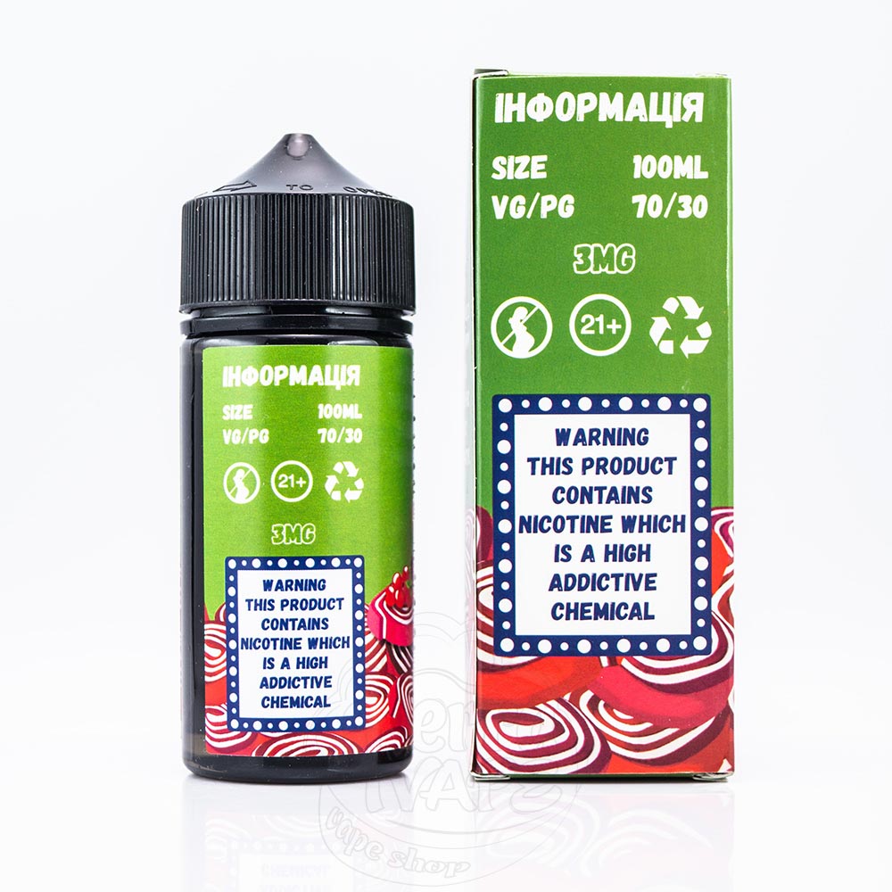 Жижа продається у флаконі розміром 100мл, який поміщений в коробочку з помітним дизайном у пін-ап стилістиці. У асортименті представлені різні солодощі, комбінації з фруктів і газовані напої.