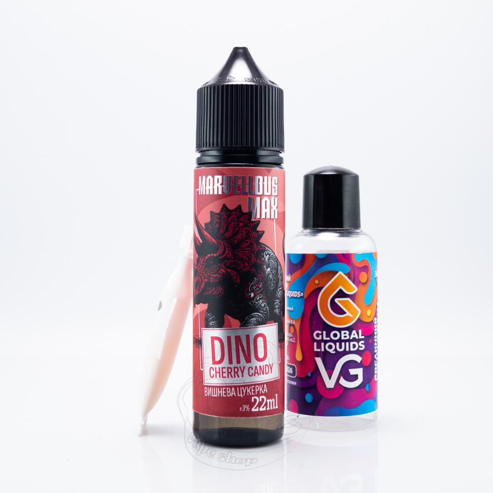 Marvellous Max Organic Dino Cherry Candy 60ml 3mg – набор жидкости с ярким вкусом кисло-сладкой вишневой конфеты.