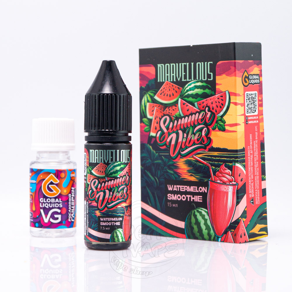 Marvellous Summer Vibes Salt Watermelon Smoothie 15ml 50mg - это набор для самостоятельного замешивания жидкости со вкусом прохладного смузи из спелого, сладкого арбуза.