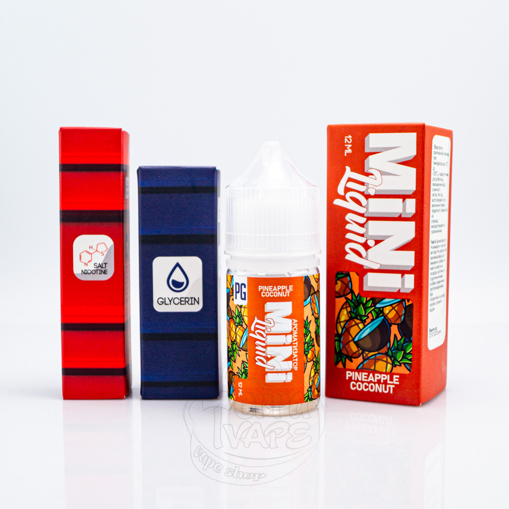 Mini Liquid Salt Pineapple Coconut 30ml 30mg - набор жидкости для электронных сигарет со вкусом сладкого, тропического микса ананаса и кокоса.