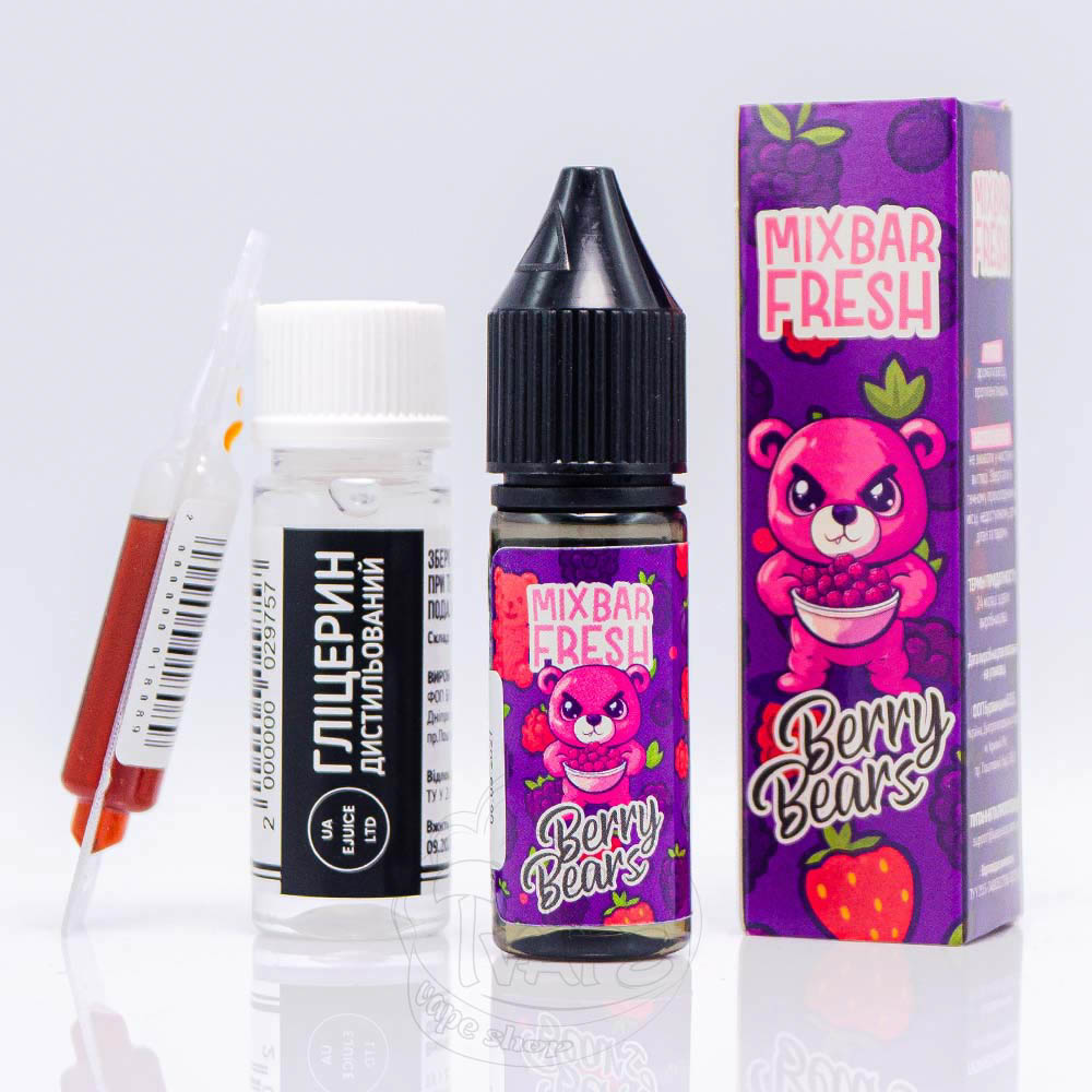 Mix Bar Fresh Salt Berry Bears 15ml 50mg - це набір рідини із ягідним смаком. Яскравий присмак малини та асаї надають кисло-солодкий мікс з легкою прохолодою та нагадають желейних ведмежат.
