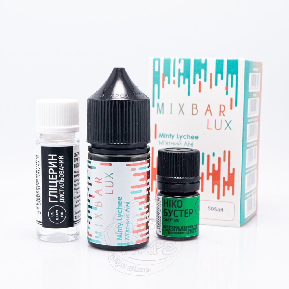 Mix Bar Lux Salt 30ml – це набір для самостійного приготування люкс-версії сольової рідини виробництва української компанії UA E-Juice, що випускається в об'ємі 30мл.