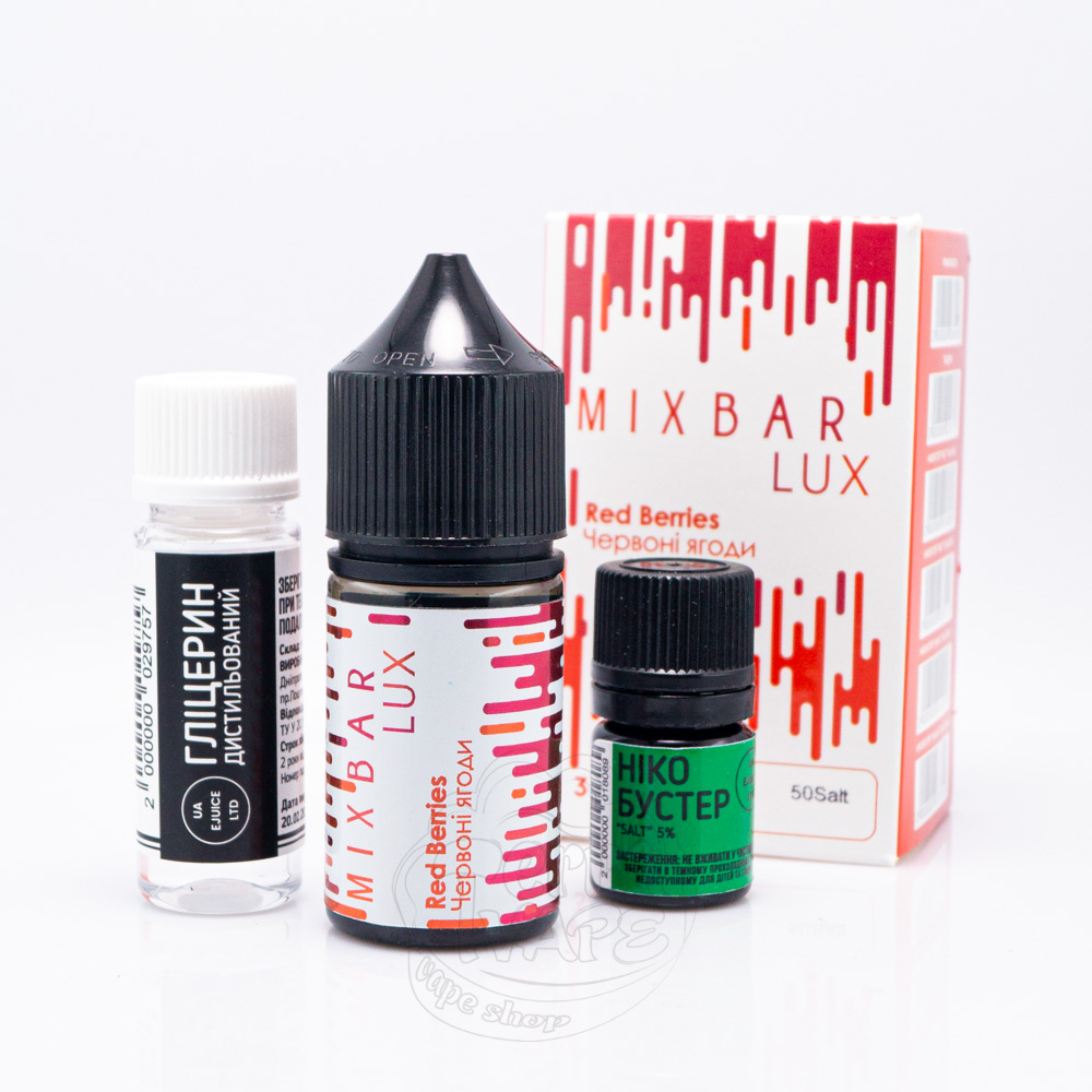 Mix Bar Lux Salt 30ml – це набір для самостійного приготування люкс-версії сольової рідини виробництва української компанії UA E-Juice, що випускається в об'ємі 30мл.