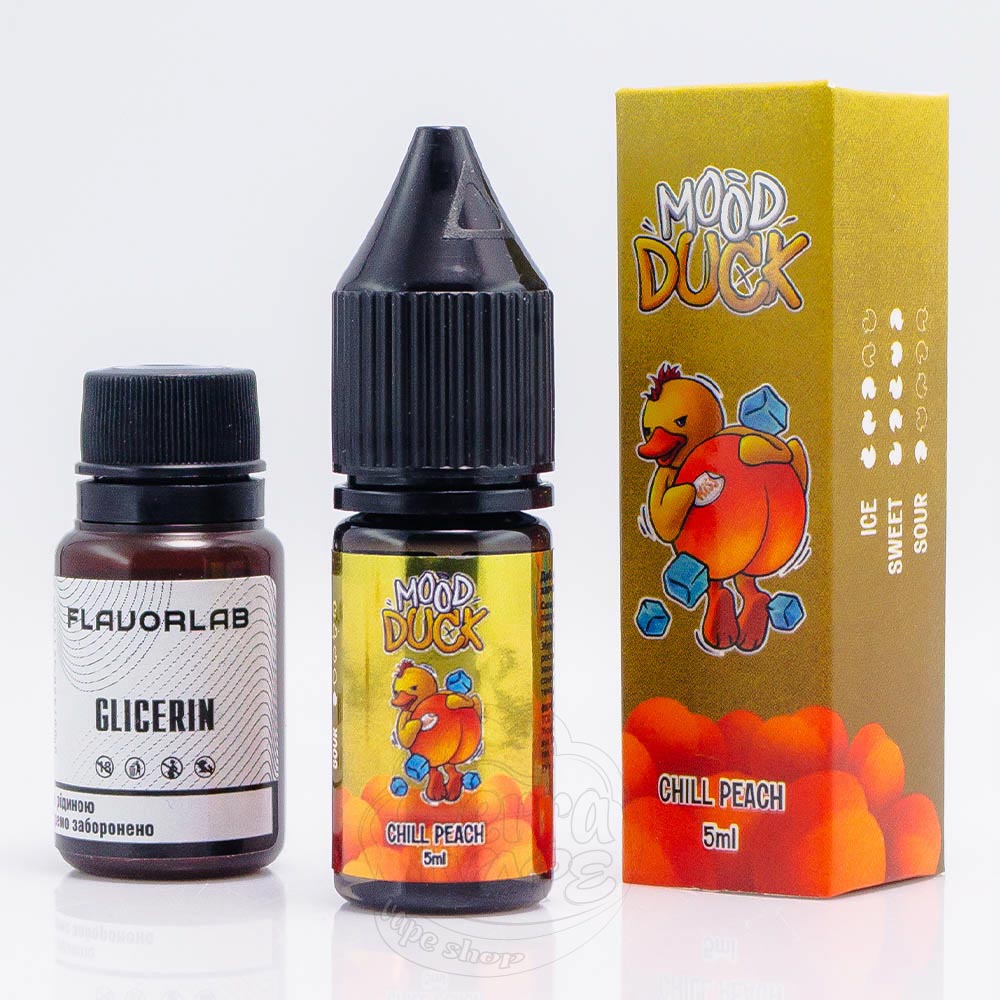 MoodDuck Salt Chill Peach 10ml 50mg - це набір компонентів для самостійного приготування рідини зі смаком охолодженого соковитого персика.