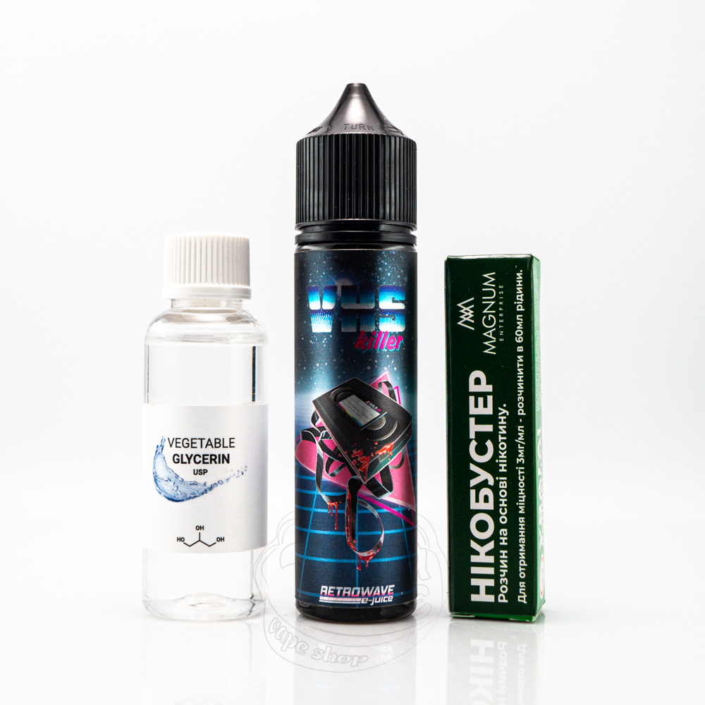 Retrowave Organic VHS Killer 60ml 0mg - це набір для самозамісу органічної жижі зі смаком стиглої ароматної полуниці, вибухового кавуна та кислуватого ківі.