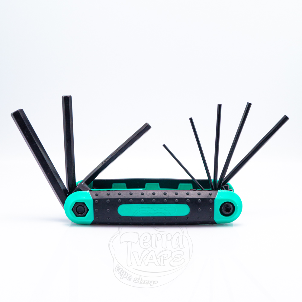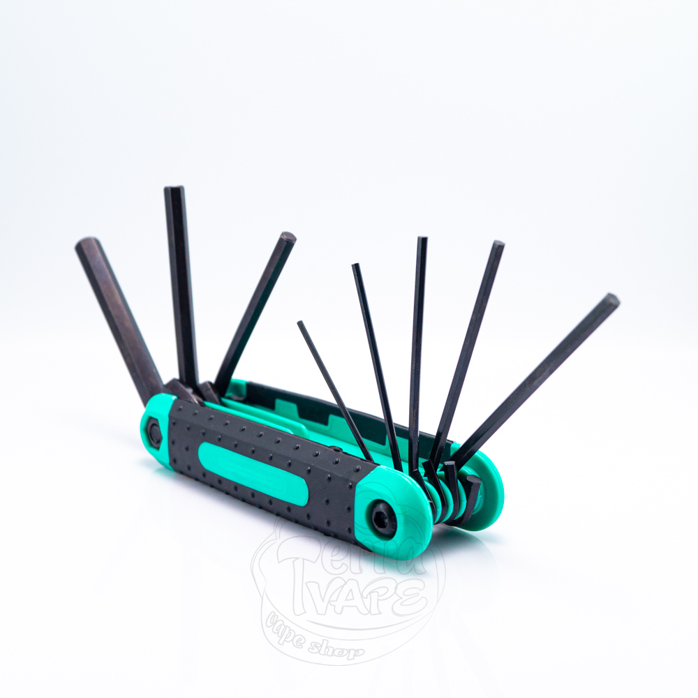 Набір шестигранників - це компактний набір із 9-ти шестигранників, призначений для самостійного обслуговування атомайзерів. Інструменти мають зручну складну конструкцію у вигляді мультитула, що дозволяє зберігати та транспортувати їх без зайвих турбот. Різні діаметри в наборі забезпечують сумісність з широким спектром моделей гвинтів - від менших до масивніших баз.