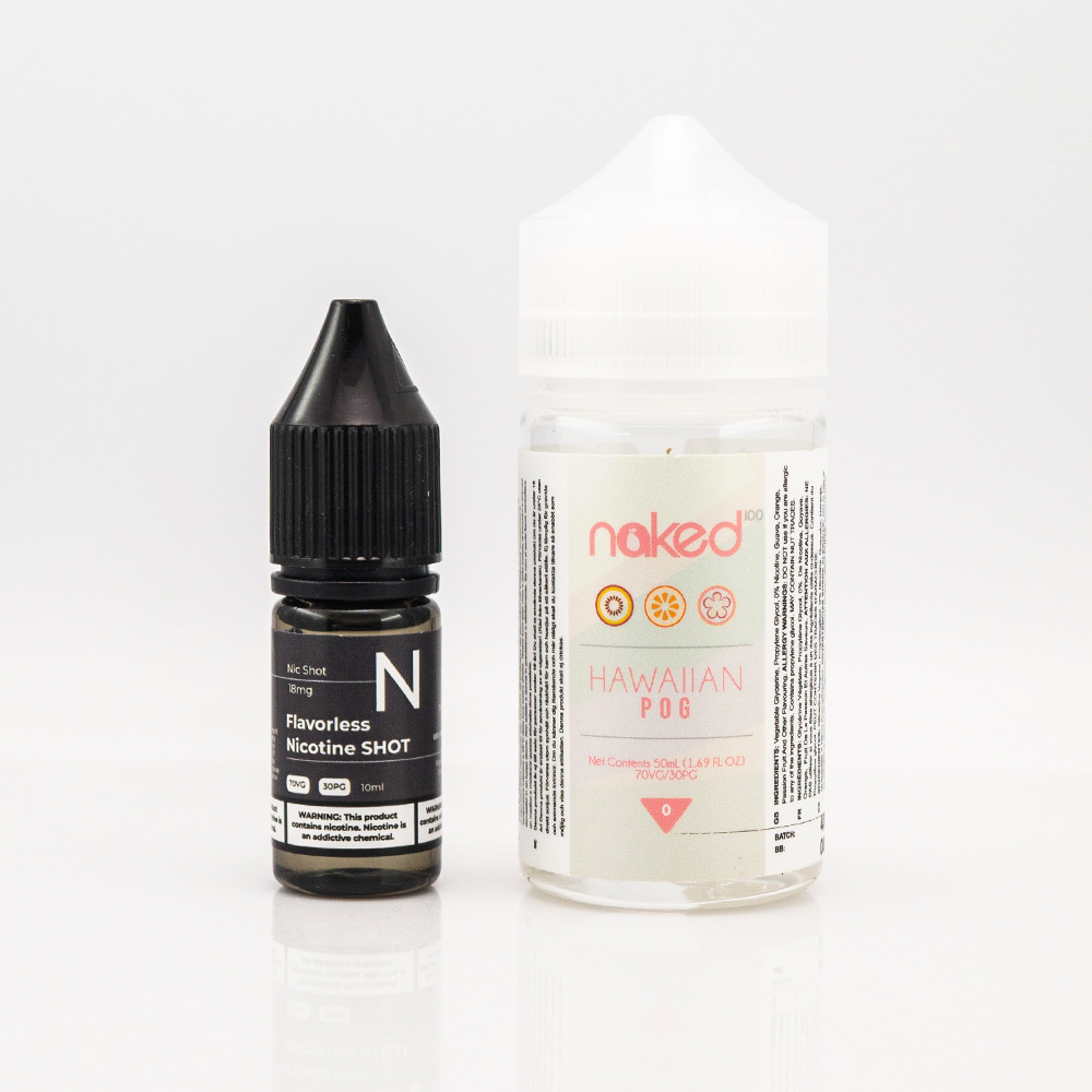 У пластиковій пляшечці ємністю 60мл міститься 50мл рідини без нікотину. Для чого залишено зайве місце, запитаєте ви. Все дуже просто - ви можете додавати нікобустери, щоб в результаті отримати нікотинову рідину. Отже, купуючи Naked100 Organic, ви маєте можливість обрати міцність серед 0; 3 або 6 мг/мл. Про процес додавання нікотину ми детальніше пояснимо нижче.