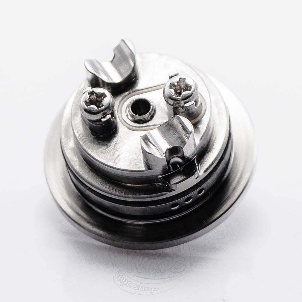 Воздух поступает на установленную спираль напрямую снизу, через отверстие, которое трудно не заметить, осмотрев деку NETSU MTL RTA. Расстояние между нагревательным элементом и воздуховодом регулируется благодаря специальным изгибам по сторонам, которые похожи на маленькие трамплины. На них при центрировании спирали ставится отвертка или Jig Coil для того, чтобы спираль зафиксировалась на предусмотренном производителем месте.
