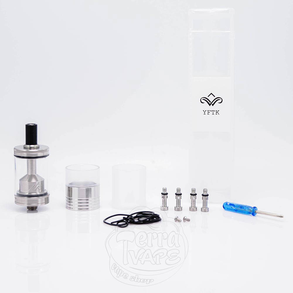 NETSU MTL RTA - это клон обслуживаемого бака, MTL-версии линейки NETSU. Диаметр базы составляет 22мм и предусмотривает установку одного нагревательного элемента. Резервуар вмещает в себя до 5мл жидкости, а заправка у бака верхняя, что является очень удобным фактором. Обдув нижний, а регулируется благодаря жиклерам, которые идут в наборе с атомайзером.