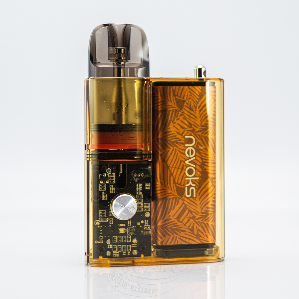 Nevoks APX C1 Pod System Kit 1000mAh Maple Yellow - це електронна сигарета жовтого кольору лінійки APX від компанії Nevoks. Всередині напівпрозорого корпусу розміщено акумулятор з ємністю 1000мАг. Вейп працює з картриджами APX, які також сумісні з деякими іншими пристроями Nevoks. Максимальна вихідна потужність становить 18W. Можлива активація як від затяжки, так і за допомогою кнопки, а також наявна функція регулювання потужності.