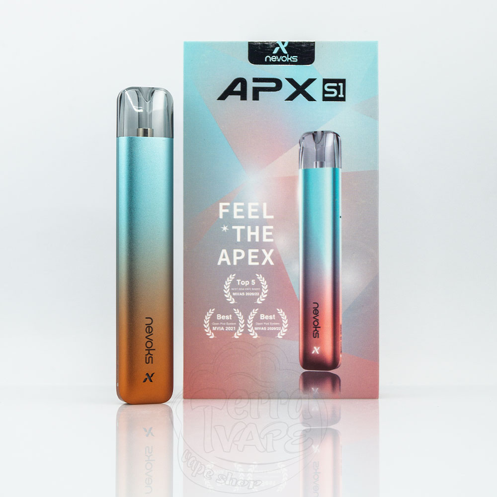 Nevoks APX S1 Pod System Kit – це багаторазова под-система від компанії Nevoks. Має компактний та дуже легкий корпус (всього 26гр), усередині якого знаходиться вбудований акумулятор ємністю 500мАч, з максимальною вихідною потужністю 18Вт. Картридж може вмістити до 2 мл рідини для електронних сигарет і має вбудований нагрівальний елемент - сітку. Відмінний вейп для новачків або тих, хто шукає простий портативний девайс.