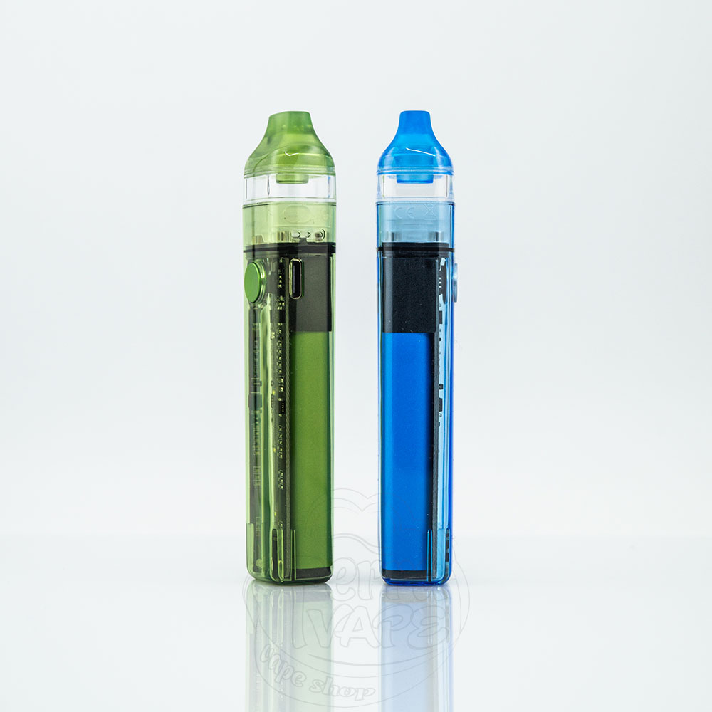 Виготовлений з ABS, PC (корпус) та PCTG (картридж) – міцні та легкі матеріали. Пристрій має унікальний дизайн з видом на чіпсет і має ряд світлодіодів, які показують потужність і рівень заряду батареї.