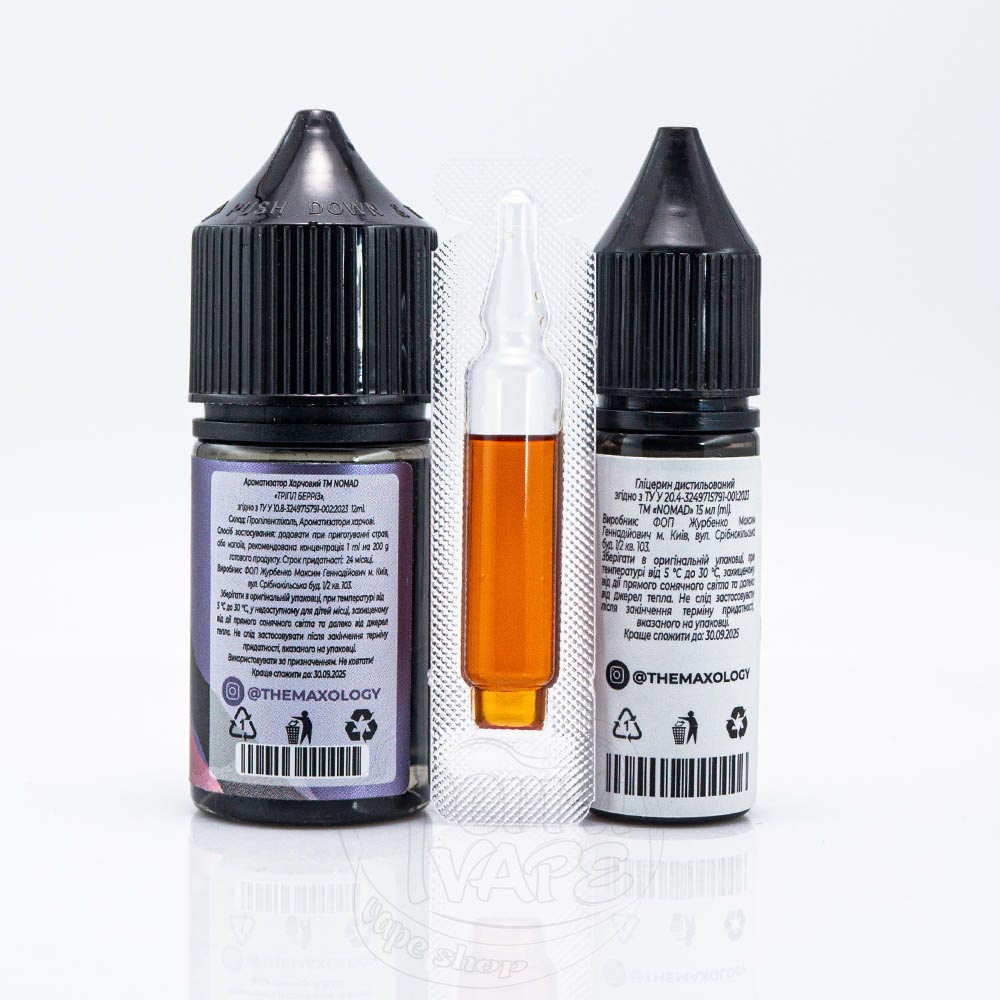 Nomad Salt Tripple Berries 30ml 0mg - приємний кисло-солодкий ягідний мікс, в основі якого виразно відчувається полуниця, а на післясмак виходить аґрус і чорниця.
