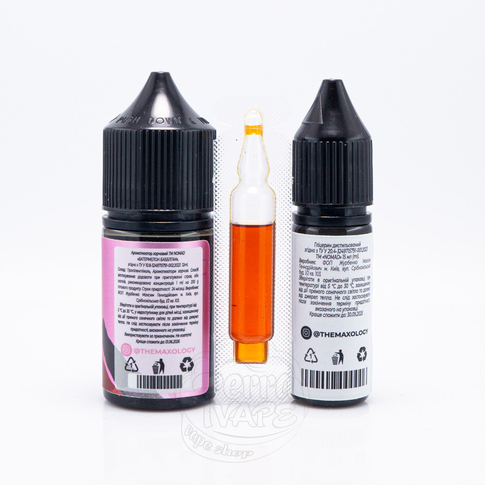 Nomad Salt Watermelon Bubblegum 30ml 0mg - це набір сольової рідини для под-систем з освіжаючим смаком кавунової жуйки.