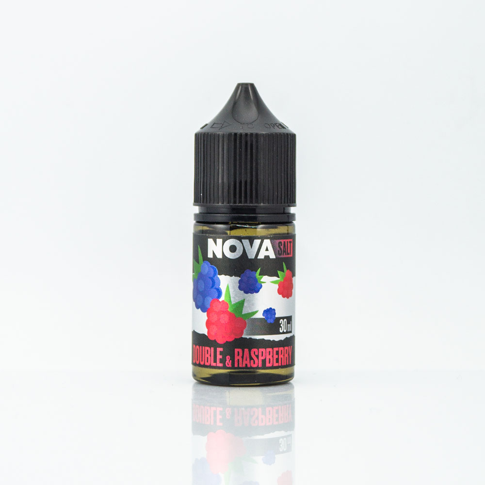 Nova Salt Double Raspberry 30ml 30mg - рідина для електронних сигарет на сольовому нікотині зі смаком поєднання червоної та синьої малини для екстра-ягідних відчуттів у роті.