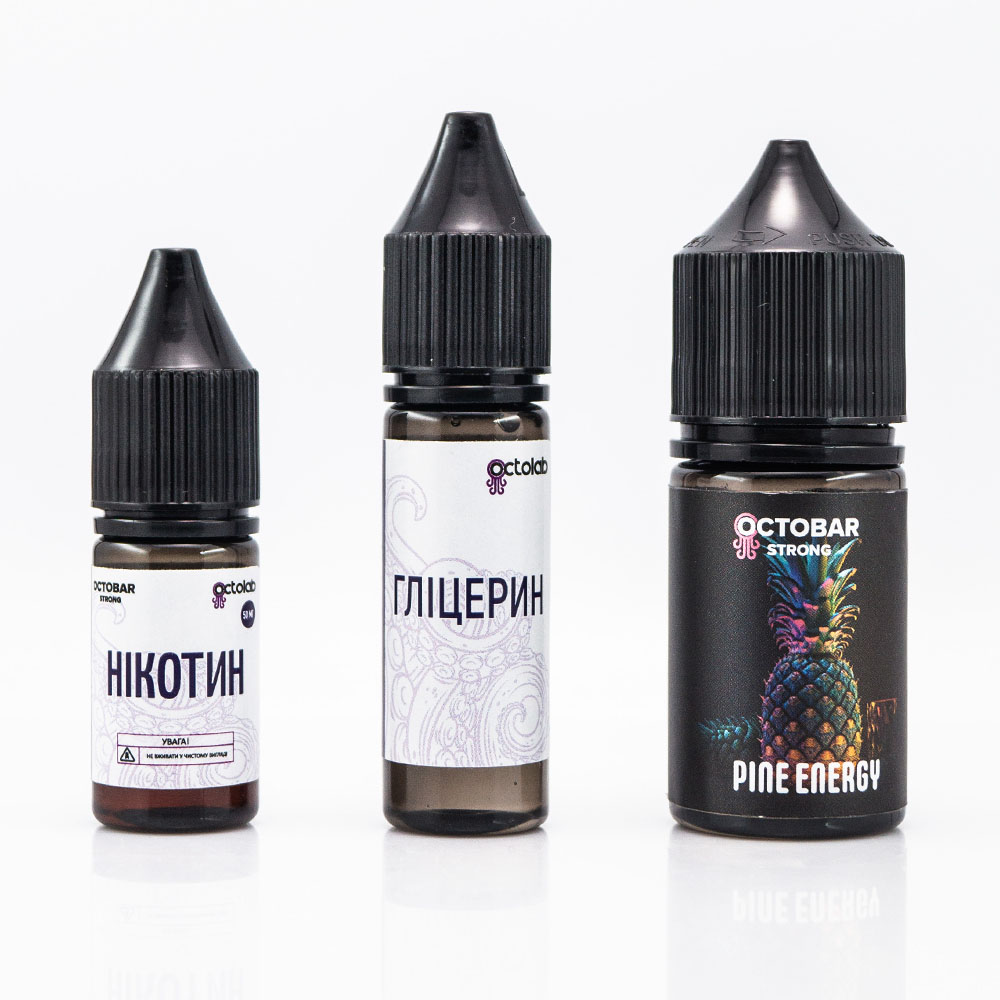 Octobar Strong Salt Pine Energy 30ml 50mg - это набор для самостоятельного приготовления жидкости для под-систем со вкусом энергетика с кисловатыми ананасовыми нотками.