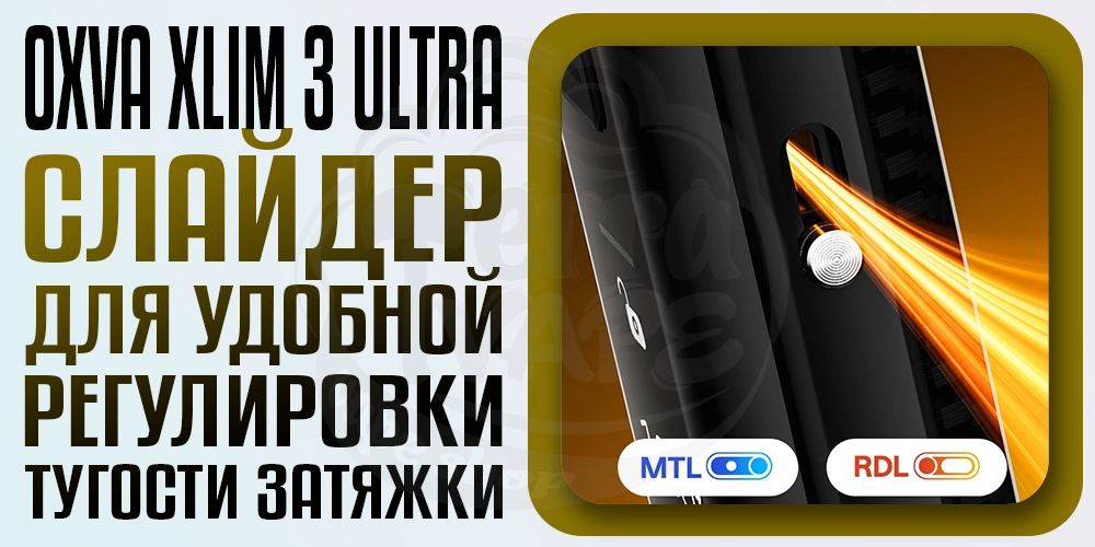 Вместе с сопротивлением картриджа, влияющим на стиль парения, устройство также позволяет настраивать обдув, который будет влиять на тугость затяжки. На боковой стороне Хлим 3 Ультра расположен ползунок, с помощью которого вы можете изменять плотность воздушного потока. Перемещая его из стороны в сторону, вы можете играть со стилями парения: