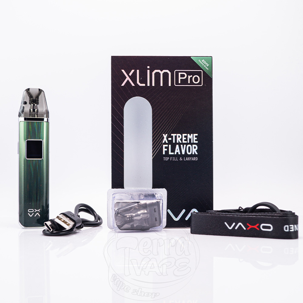 OXVA XLIM Pro Pod System Kit - це про-версія електронної сигарети XLIM від відомого виробника OXVA. Пристрій набув збільшеної ємності вбудованого акумулятора, що складає 1000мАг, а також підвищив максимальну вихідну потужність до 30W. Активація відбувається як за допомогою кнопки, так і від затяжки. Як і попередні версії, працює XLIM Pro на надійних картриджах, що вміщують до 2мл рідини для вейпів.