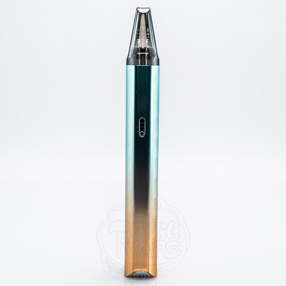 По форме XLIM SE 2 очень похож на первую версию и, в целом, на большинство устройств Икслим серии. Корпус тонкий и приятный на ощупь, а также он остается таким же легким, как и его предшественники. Это очень портативная электронная сигарета, ведь ее размеры составляют всего 112.7мм в высоту, 24.2мм в ширину и 14мм в толщину. Дизайн электронки сдержанный и одновременно выразительный за счет использования различных текстур. А что касается цветов, то производитель решил порадовать пользователей тремя разновидностями более ярких градиентов и тремя однотонными позициями в сером, черном и серебристом вариантах.