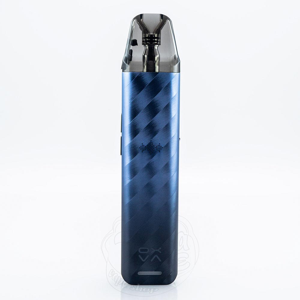 На лицевой части электронной сигареты в нижней части расположена горизонтальная полоска, которая представляет собой светодиодный индикатор. Прямо над ним разместили логотип компании, а на боковой стороне скромно спряталась надпись "XLIM SE 2".