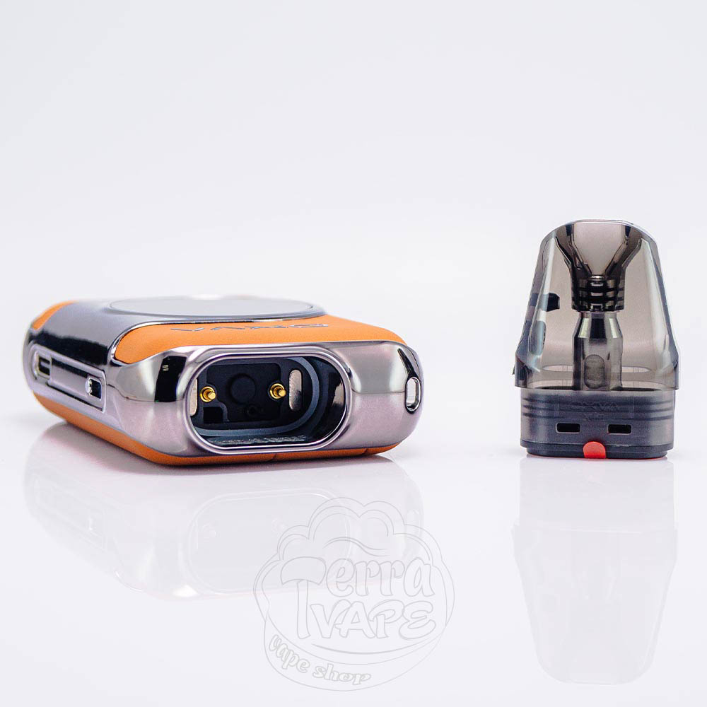 Производитель отмечает, что на этом устройстве вы можете использовать как солевые, так и органические жижки, однако мы советуем иметь в виду, что органические жидкости можно заливать только в картриджи с сопротивлением 0.4Ω. Такие сменные элементы работают на большей мощности и имеют большие отверстия для пропитки хлопка в нагревательном элементе, благодаря чему густая органическая жидкость сможет хорошо впитаться в ватку и обеспечит оптимальное количество пара при испарении.