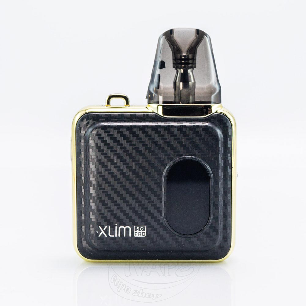 OXVA Xlim SQ Pro Pod System Kit 1200mAh Gold Carbon - це покращена версія pod-системи Xlim SQ, кольору чорного карбону із золотистими панелями від відомого бренду Oxva. Ця електронна сигарета має особливий дисплей зі змінними темами інтерфейсу, а також великою кількістю налаштувань. Под працює від вбудованого акумулятора ємністю 1200мАг, а заряджається швидким струмом через Type-C роз'єм. Сумісний з картриджами Xlim v2 або Xlim v3 та розрахований на сигаретну або напіввільну RDL затяжку з максимальною вихідною потужністю 30W. Також присутня можливість налаштовувати тугість затягування. Відмінна компактна електронна сигарета як для новачків, так і для бувалих вейперів.