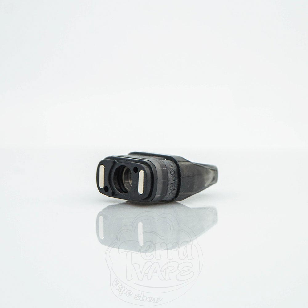 Картридж виконаний з харчового пластику в чорному напів-прозорому кольорі. Має звужену верхню частину, яка є мундштуком, і заокруглені кути для максимальної ергономіки та комфорту під час вейпінгу.