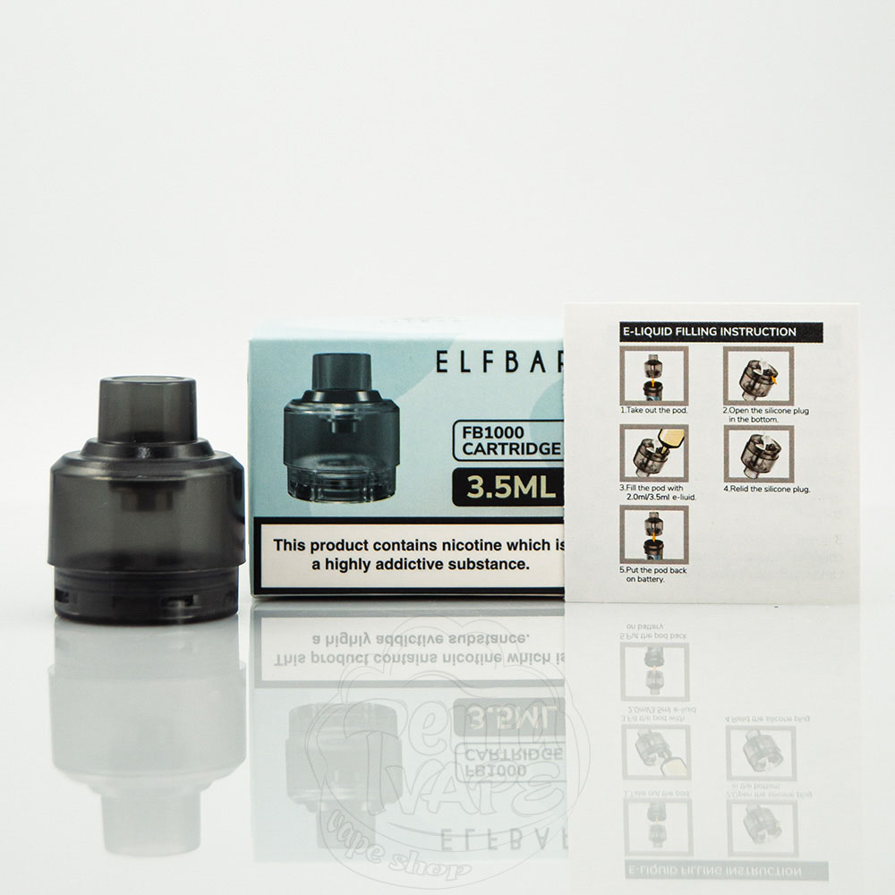 Порожній картридж Elf Bar FB1000 Pod Kit 3.5ml - це змінний резервуар з мундштуком для багаторазової POD системи ФБ1000 від популярного виробника одноразових електронних сигарет Elf Bar.