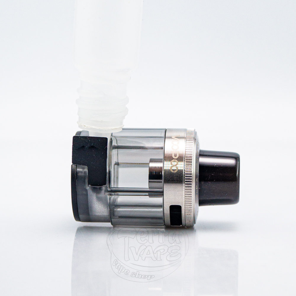 Об'єм резервуару складає 5мл, а заправка виконується через бічний отвір. Особливістю картриджів PnP-X є вбудована система регулювання тугості затяжки у вигляді кільця з обертом на 360°, тож під час користування він максимально нагадуватиме функціонал повноцінного атомайзера. Voopoo використовують найпотужніші магніти, щоб резервуар надійно тримався у корпусі електронної сигарети.