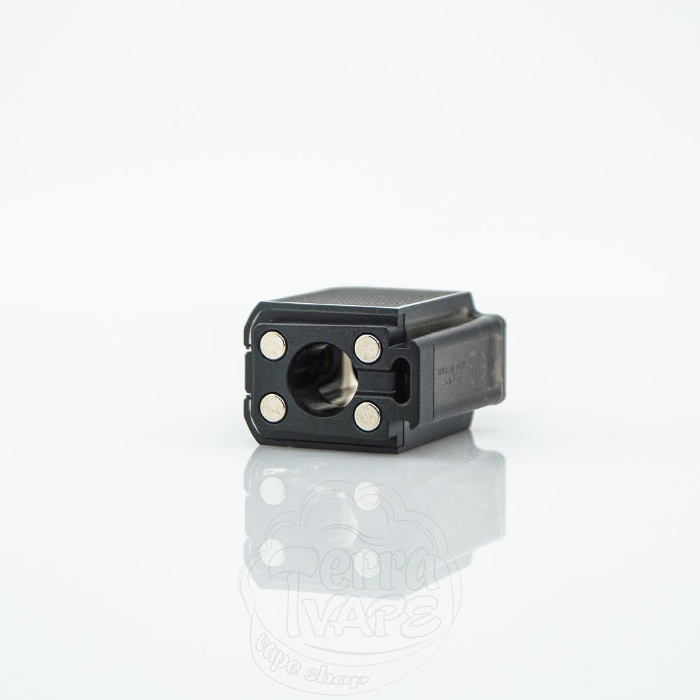 Картридж крепится к корпусу на мощных магнитах. Вмещает до 3 мл жижи для электронных сигарет.