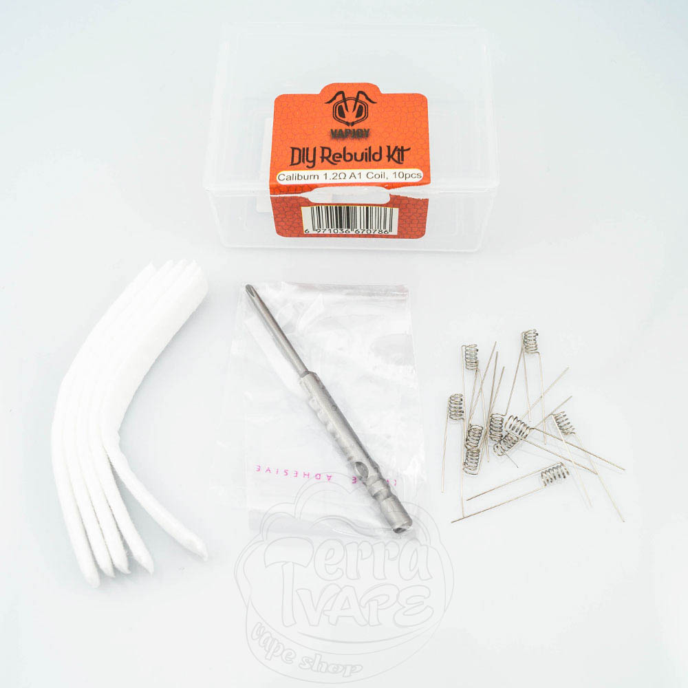 Компанія VapJoy врахувала цей фактор і випустила набір, призначений для заміни вати і нагрівального елементу у випаровувачі або картриджі до 10 разів. Всі складові упаковані в зручну пластикову коробочку.